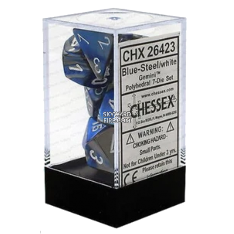 CHESSEX - Gemini Polyhedral 7 Dice Set - Blue-Steel / White