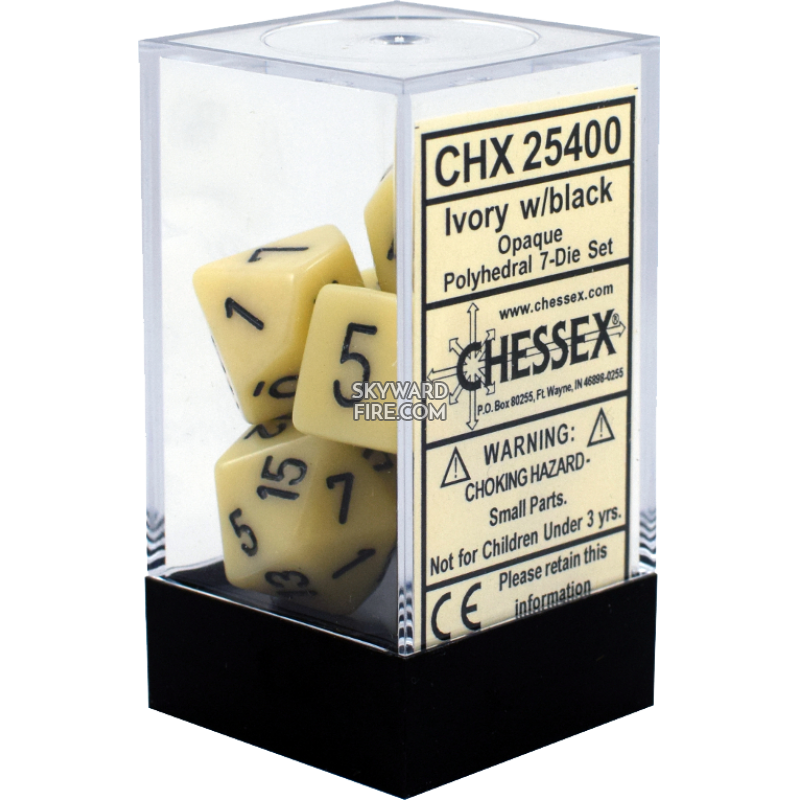 CHESSEX - Opaque Polyhedral 7 Dice Set - Opaque Ivory / Black