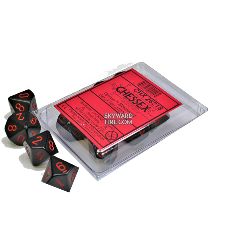 CHESSEX: Black / Red Set Of Ten D10 DICE