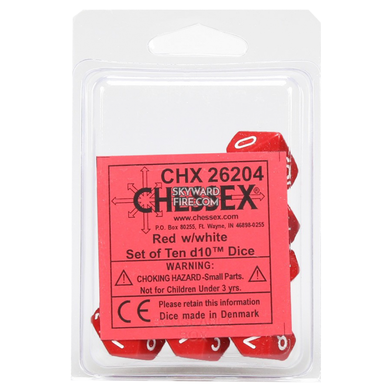 CHESSEX: Red / White Set Of Ten D10 DICE