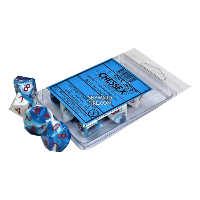 CHESSEX: Gemini Blue-White / Red Set Of Ten D10 DICE