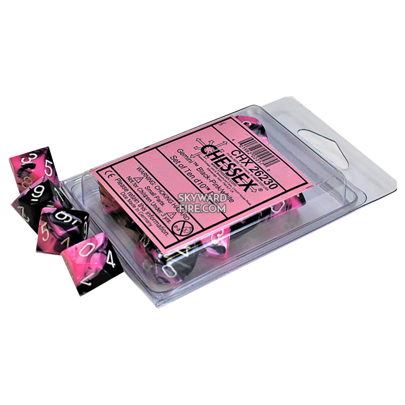 CHESSEX: Gemini Black-Pink / White Set Of Ten D10 DICE