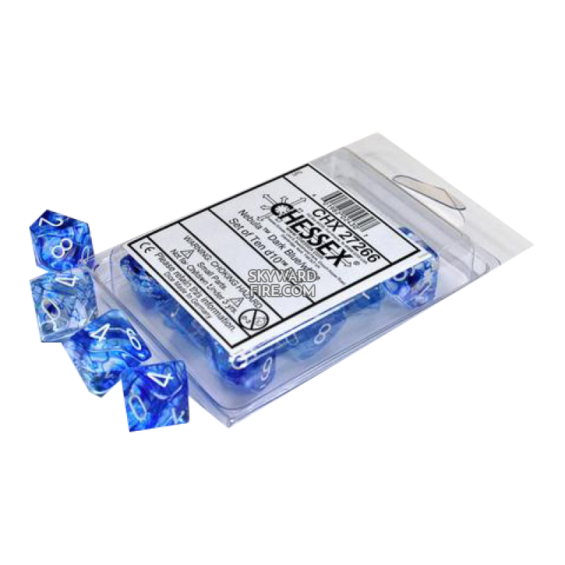 CHESSEX: Nebula Dark Blue / White Set Of Ten D10 DICE