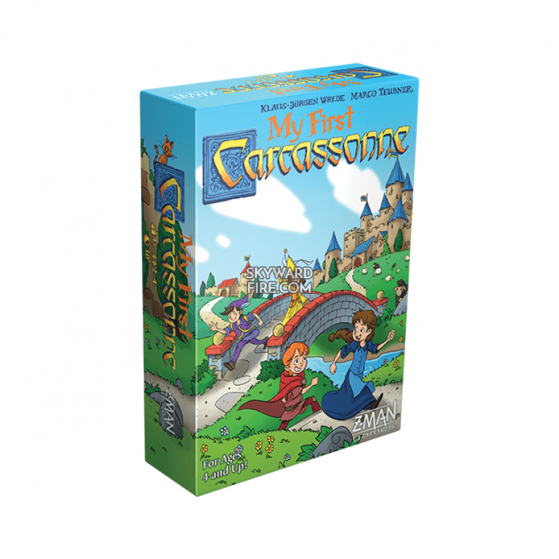 Designed for ages four and up, My First Carcassonne brings children into the fun of building the city of Carcassonne. It maintains the same core game design that makes the original Carcassonne a classic, while eliminating the need to count high scores. Place the tiles and as many of your pawns as you can. The streets will echo with laughter as animals are caught and returned home safely!