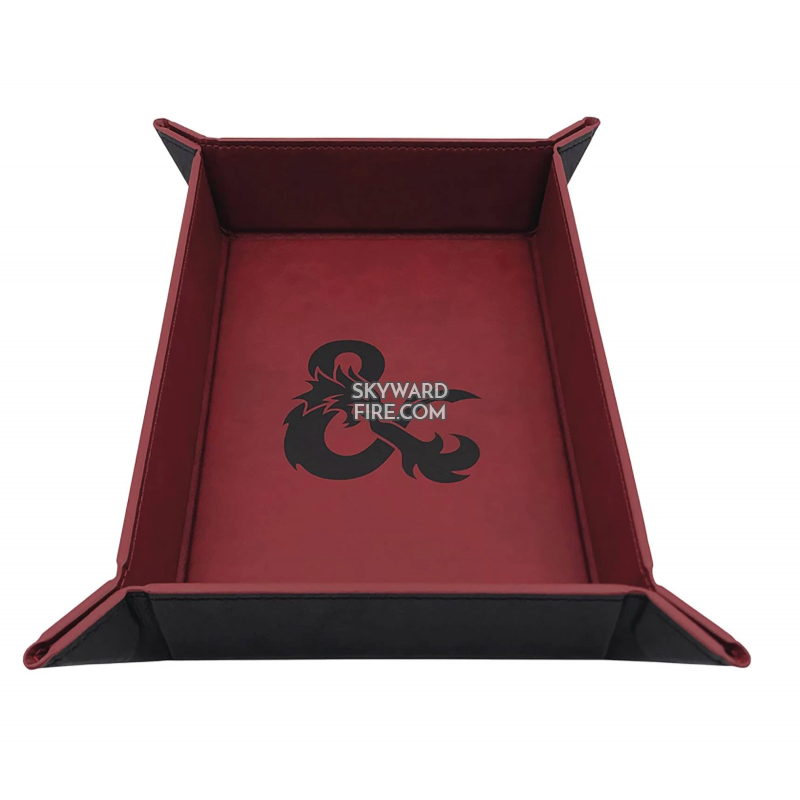 Ultra PRO’s Foldable Tray of Rolling for Dungeons & Dragons offers a safe and aesthetic space for rolling dice. These trays are no bigger than a sheet of paper when flat and utilize small magnets in each corner to easily pop up walls to keep dice under control when rolling - no bulky clasps or snaps needed! Store your dice rolling tray easily in your backpack or character folio. The Foldable Tray of Rolling is reversible! With one side a black leatherette material with a red foil Dungeons & Dragons logo, and the other featuring an inverted red leatherette with a high gloss black logo, the Foldable Tray of Rolling is the perfect addition to any gaming dungeon.