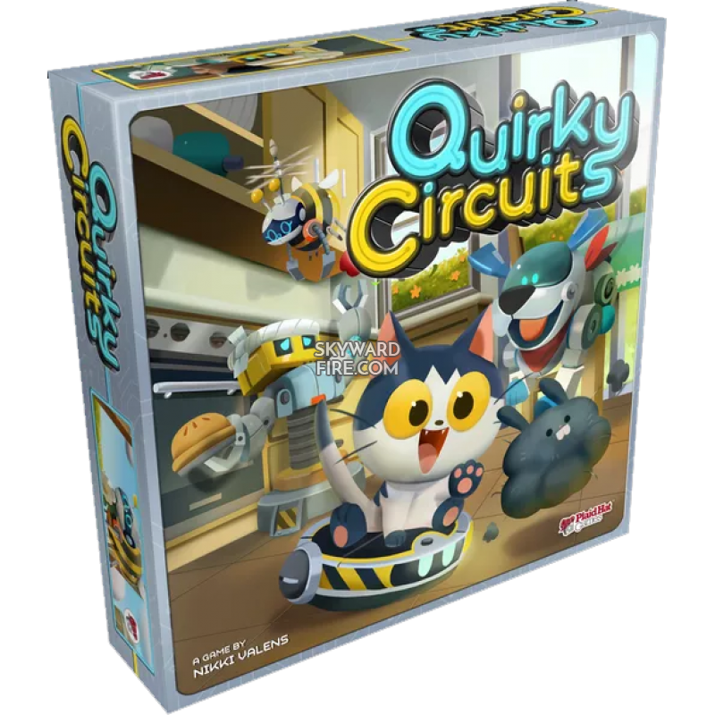 Quirky Circuits is a game of robot programming silliness in which each player contributes to the programming of an adorable robo-friend. But be warned — no one knows which commands the other players will be tossing in! Will you be able to help the little robot complete its task, or will you unleash automated mayhem? Be careful for you'll have to work together before your robot's battery is drained! With 21 scenarios of increasing intensity, Quirky Circuits is guaranteed to provide hours of brain-bending fun.